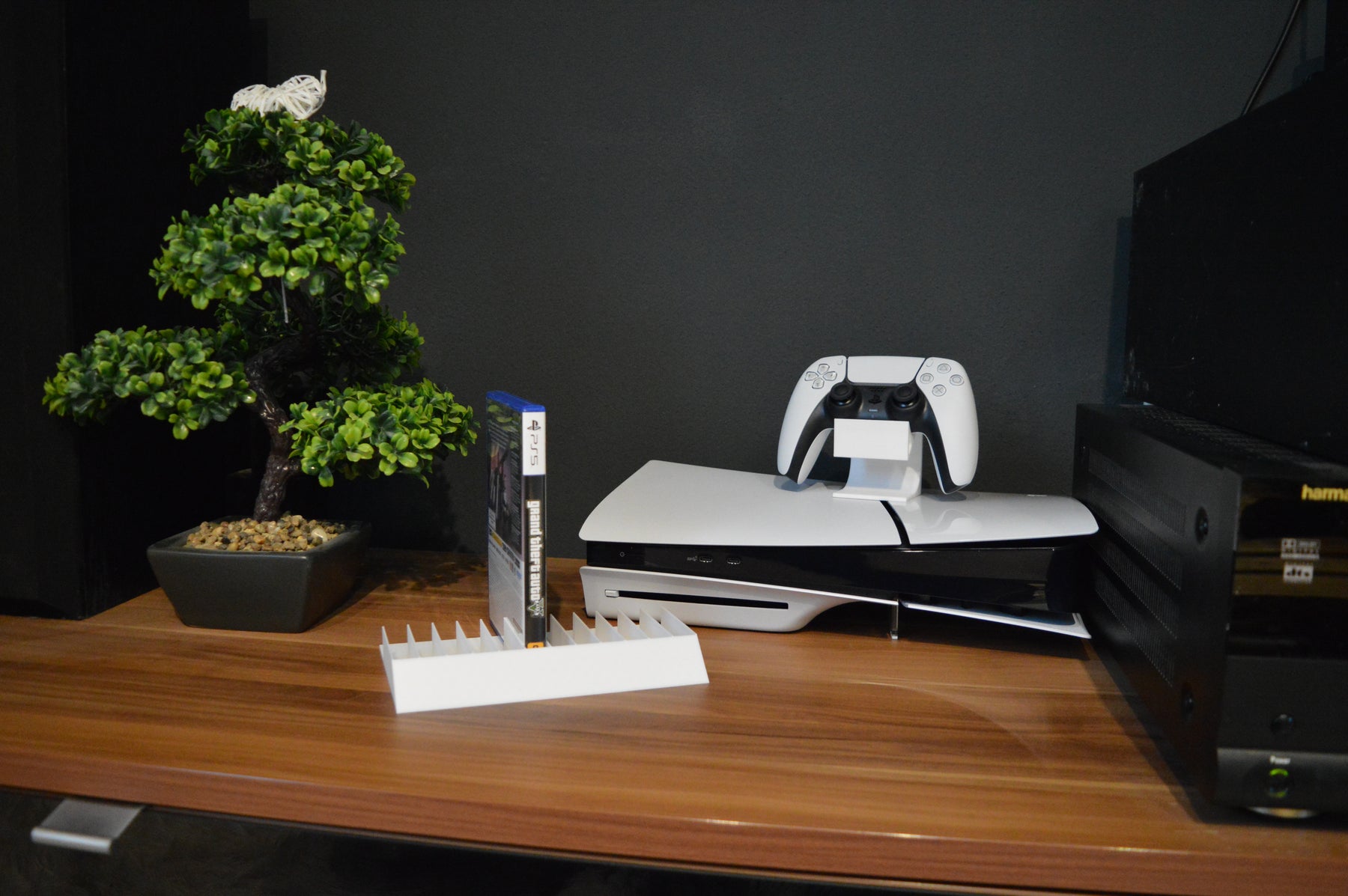 Unsere elegante und moderne Halterung ist der perfekte Ort, deine Spiele zu lagern und zu präsentieren! Bis zu 12 Spiele finden dort ihren Platz. Egal ob PlayStation, Xbox oder PC – diese Halterung hält deine Gaming-Sammlung ordentlich und griffbereit.