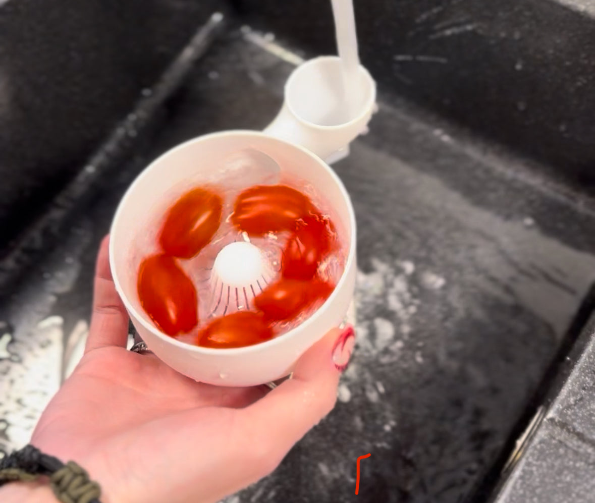 Der automatische Obst- und Gemüsewäscher macht das Reinigen von frischen Lebensmitteln zum Kinderspiel. Einfach Obst oder Gemüse einfüllen, Wasser einlaufen lassen und der clevere Mechanismus übernimmt den Rest. Die Rotationsbewegung durch den Wasserdruck reinigt gründlich und schonend – ganz ohne Strom oder Chemie.